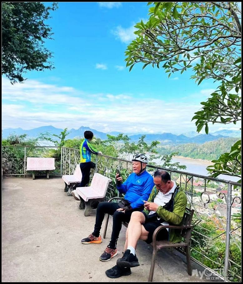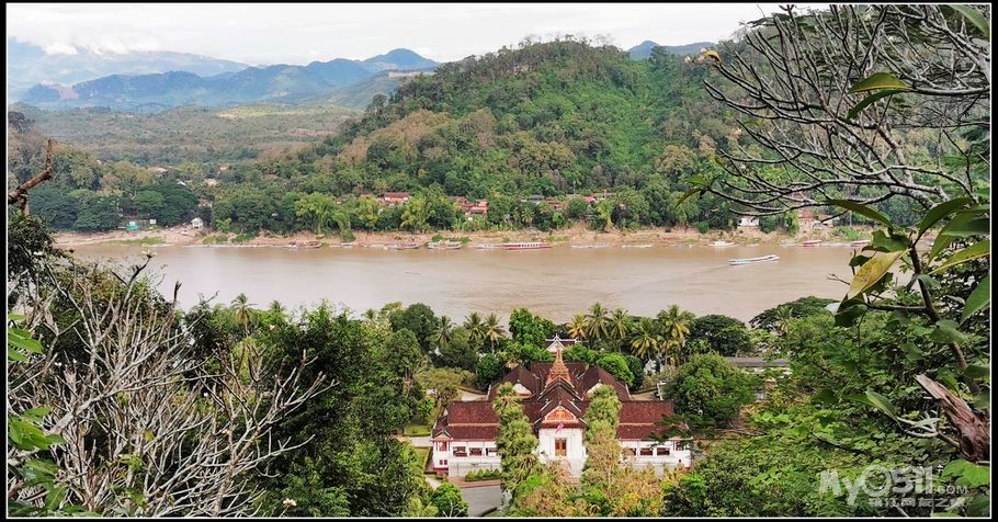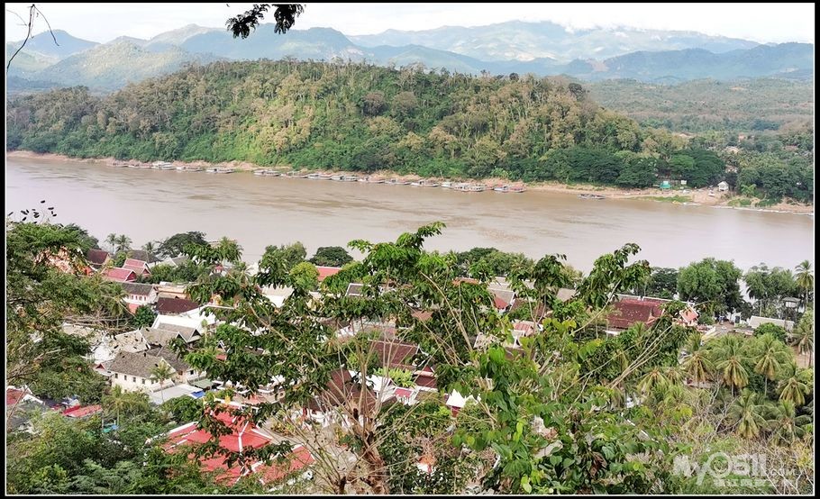 整个琅勃拉邦的美景就尽收眼底,真的是美哭了! 特别是湄公河,就像一条银色的丝带在远方飘舞。