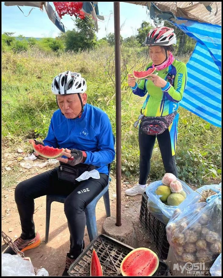 骑累了,在路边上休息一下,买个西瓜吃起来。吃住行不算便宜也不算贵,大致国内三.四线城市的水平。