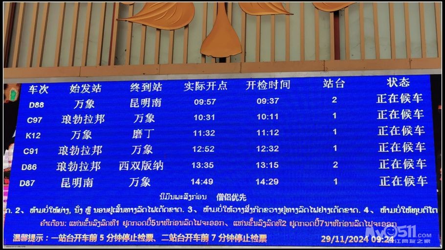 从琅勃拉邦乘火车到老挝边境城市磨丁。