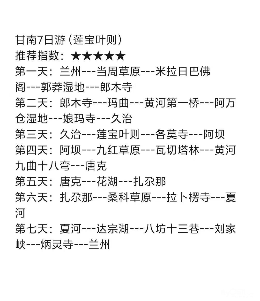 我这次比较想走甘南,初步想9天,除去落地和回来2天,打算玩7天。当然有更合理的路线想也可以相应增加几天,先感谢大家