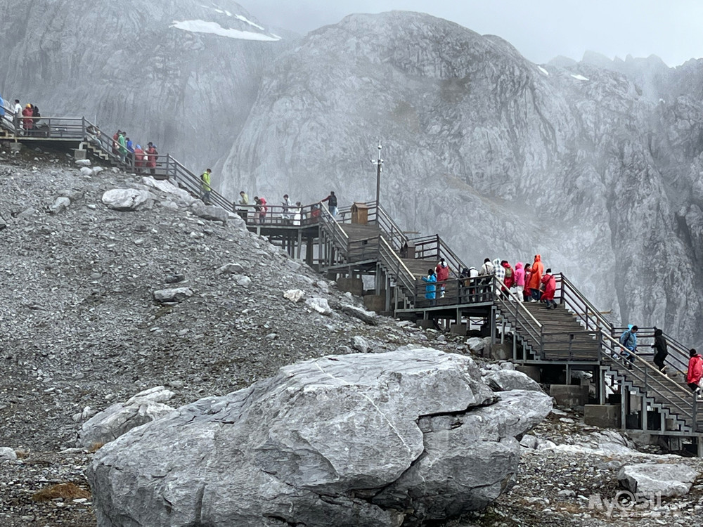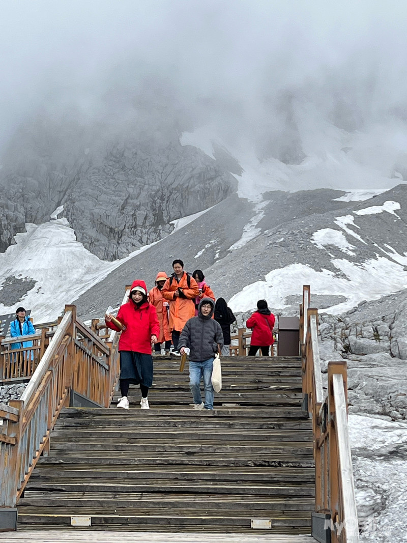 冒着细雨,我和朋友们一起乘坐缆车登上了玉龙雪山4506米。本来以为会有高原反应,我们提前喝了糖浆,吸了氧气,结果发现我们身体都不错,几乎没有高原反应,带着的大瓶氧气成了摆设。