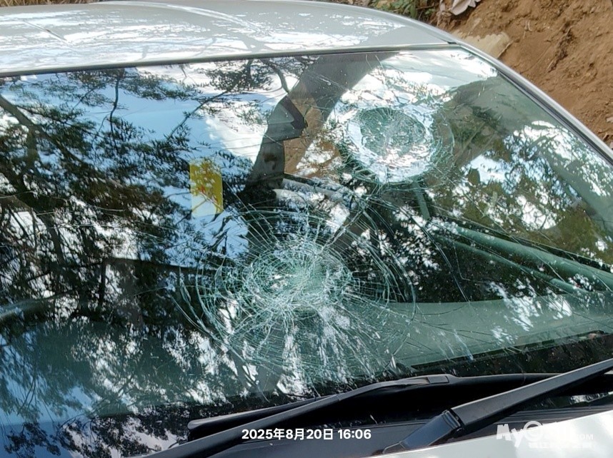 三是人遇到乌鸦屎袭击,车遭天降树枝砸坏前挡风玻璃,所幸人无事也没有影响行程。