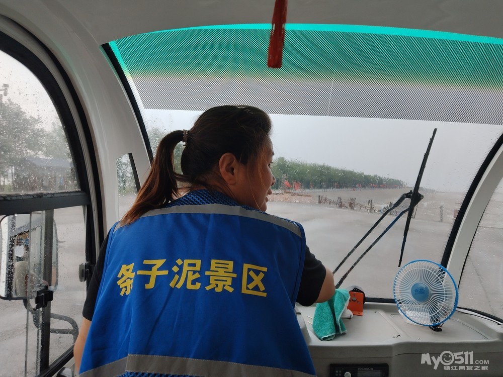 游玩过程中突遇太阳雨,就在电动车里面避避雨,温度有所下降。结束后就开车前往条子泥。网上购买了门票优惠价20元一张,到游客中心大厅有直播购票,包含内部小火车电瓶车等29.9元,重新购买入园。先做景交到换乘点转小巴士到下滩处。