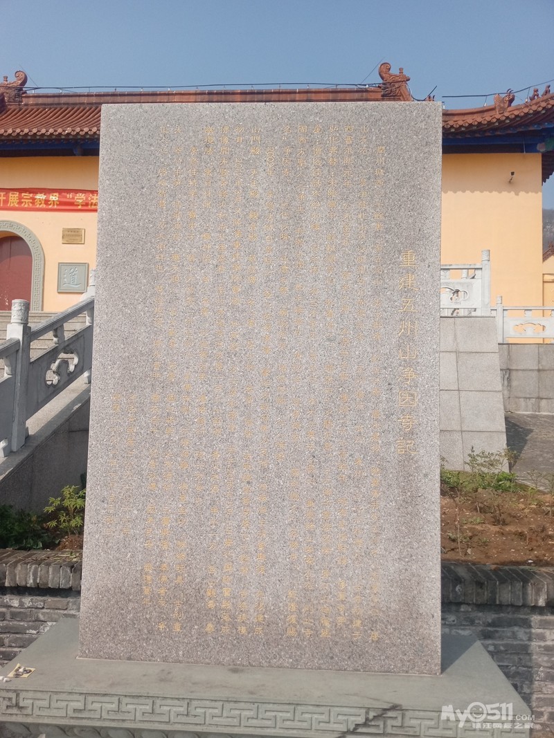 天王殿广场右侧,立有《重建五洲山净因寺记》碑刻