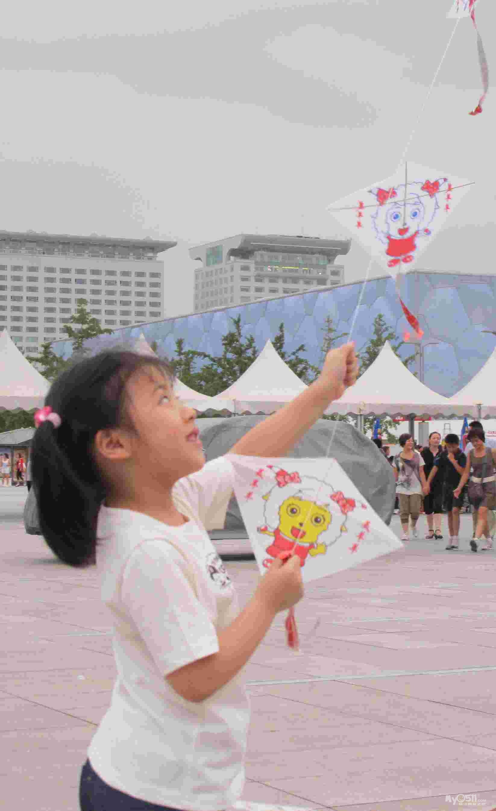 猜我们在干什么,哈哈,我们在水立方前面放风筝呢!