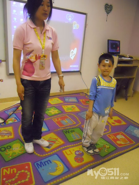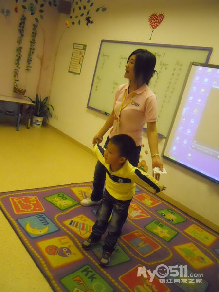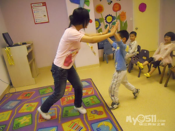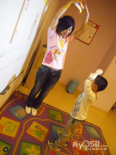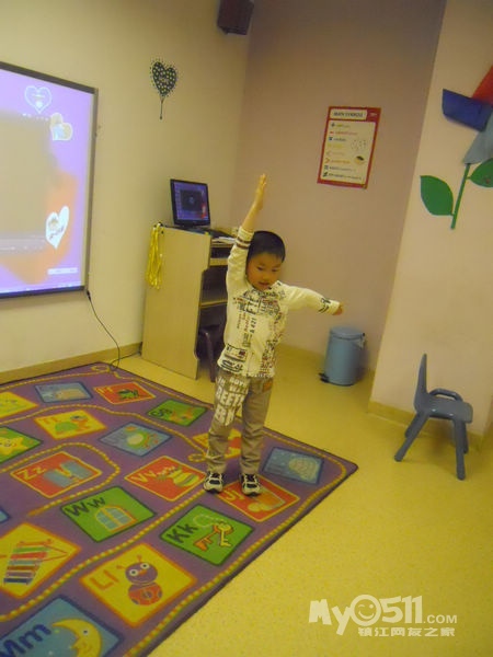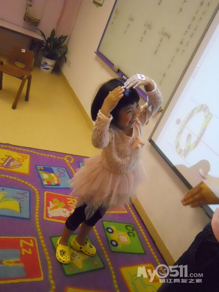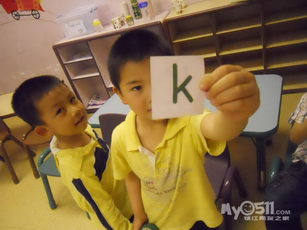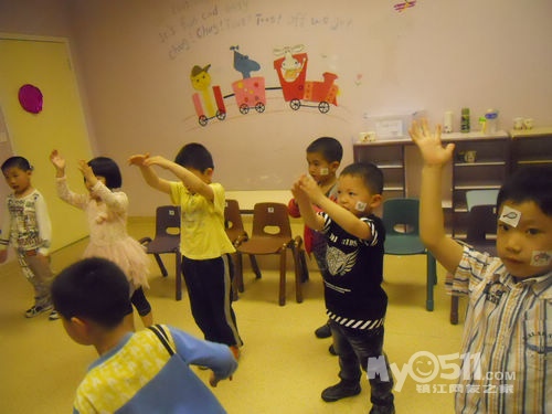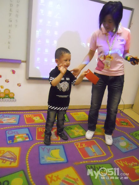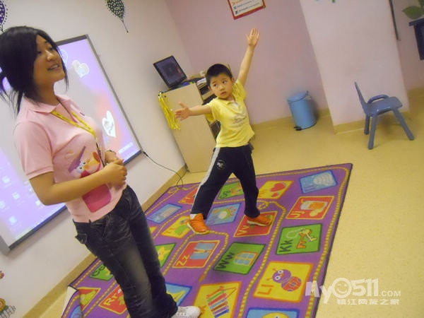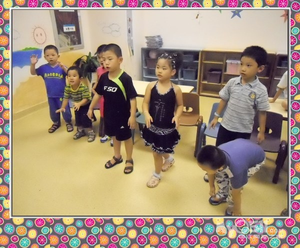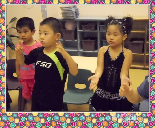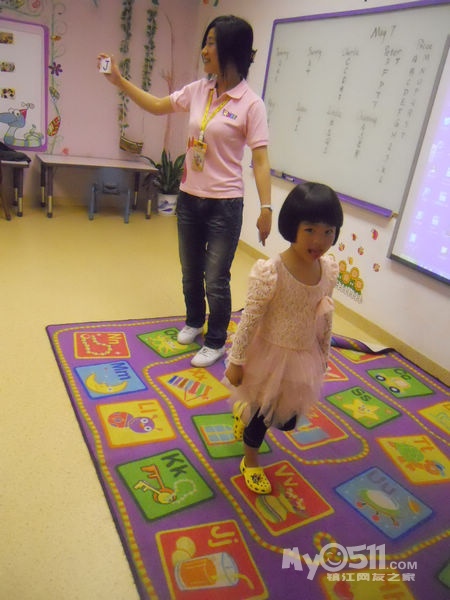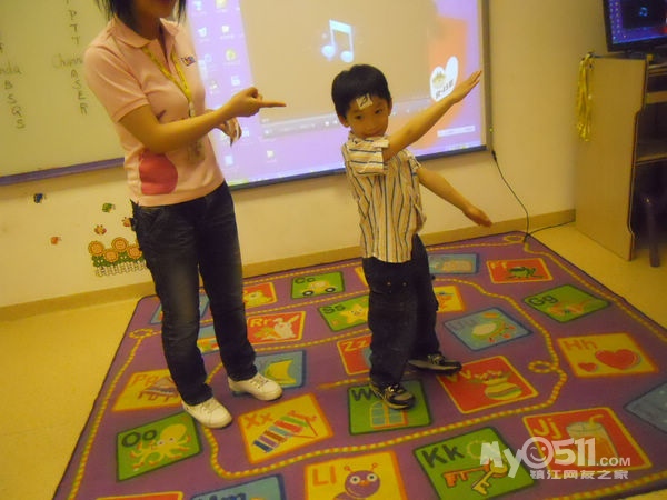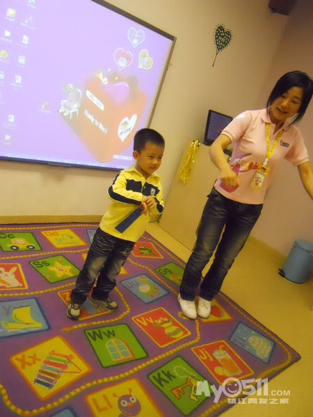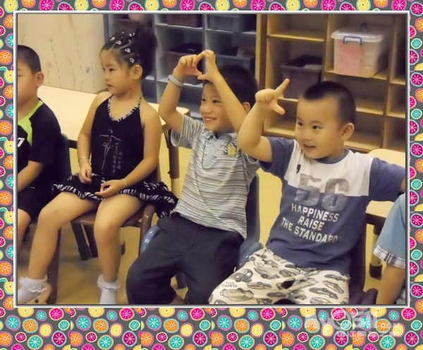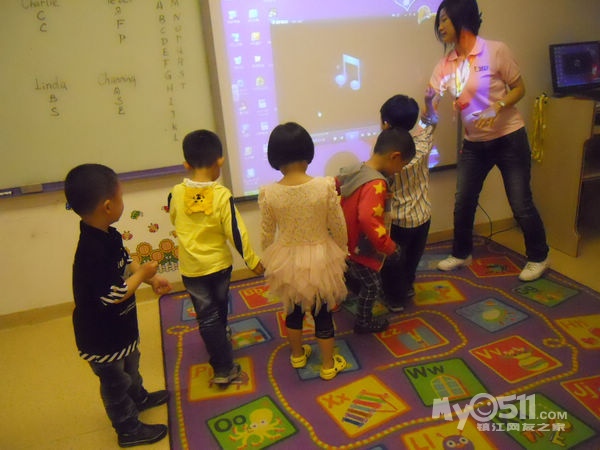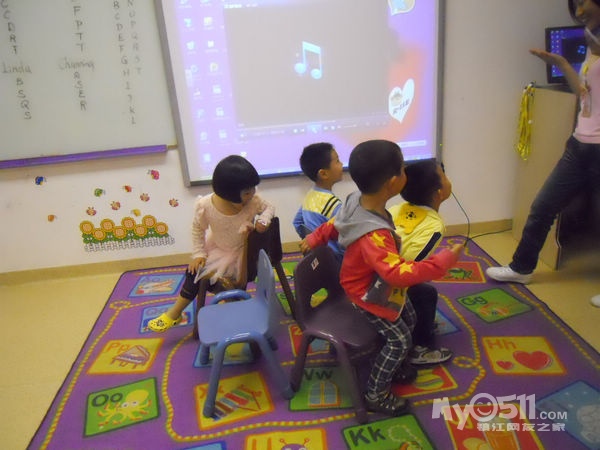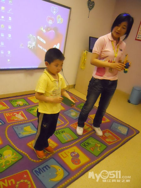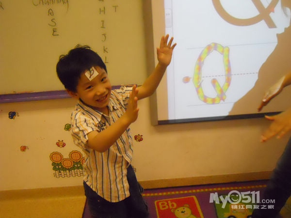孩子们在唱歌跳舞中复习英文字母