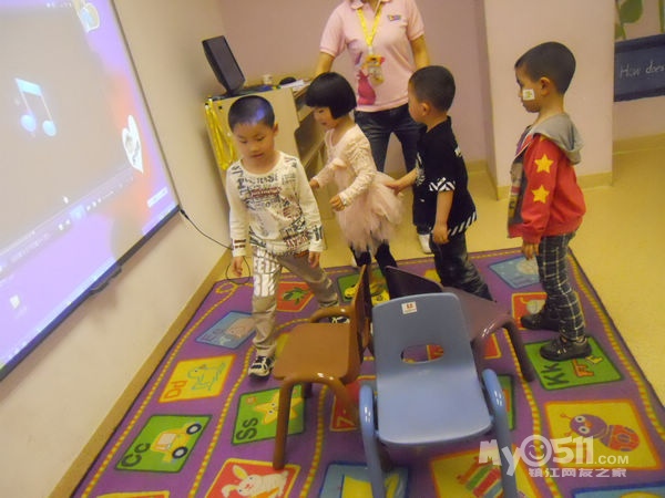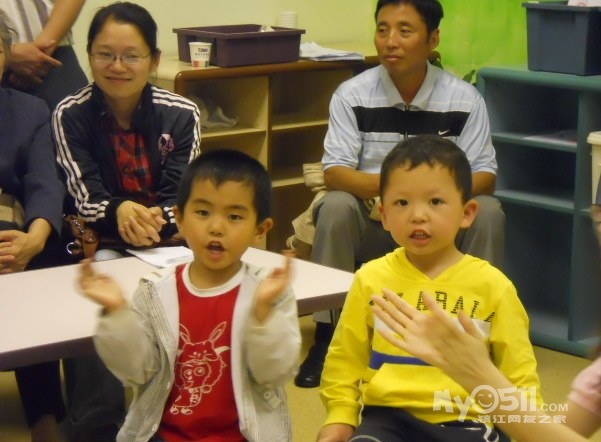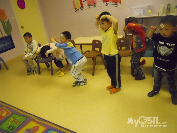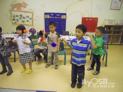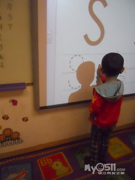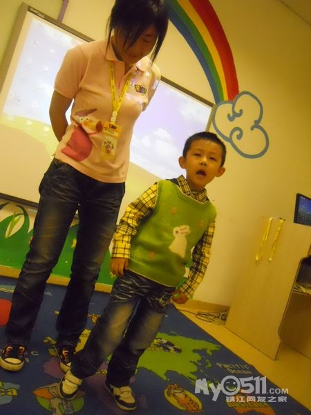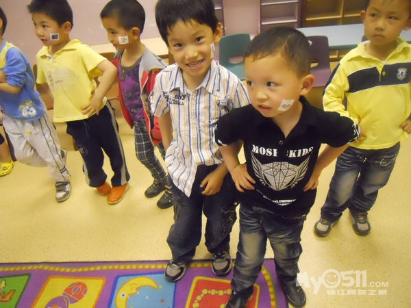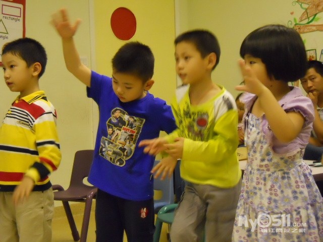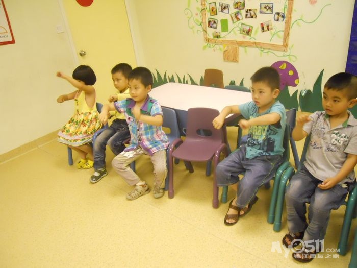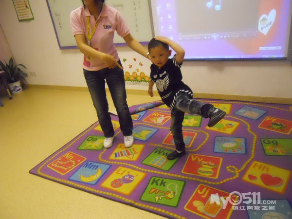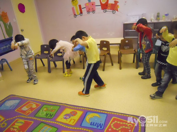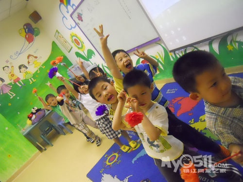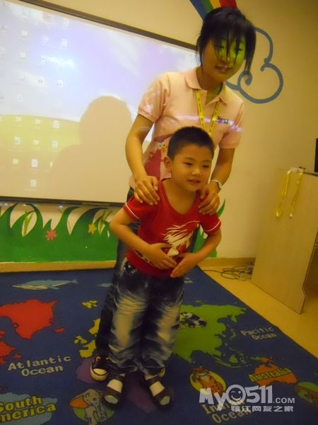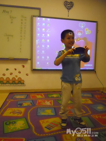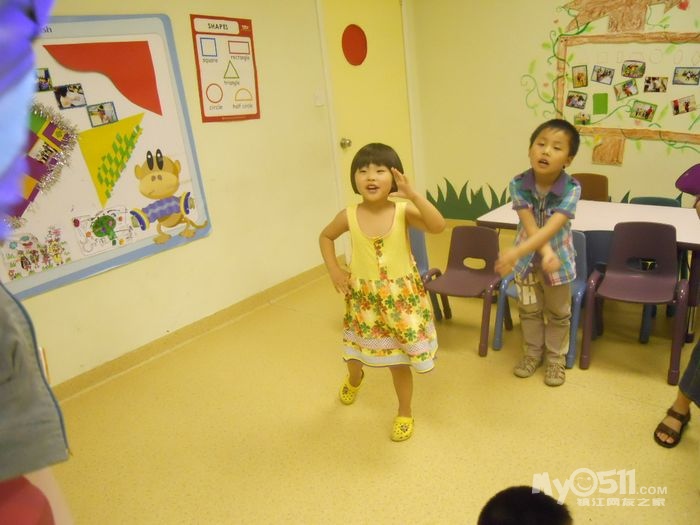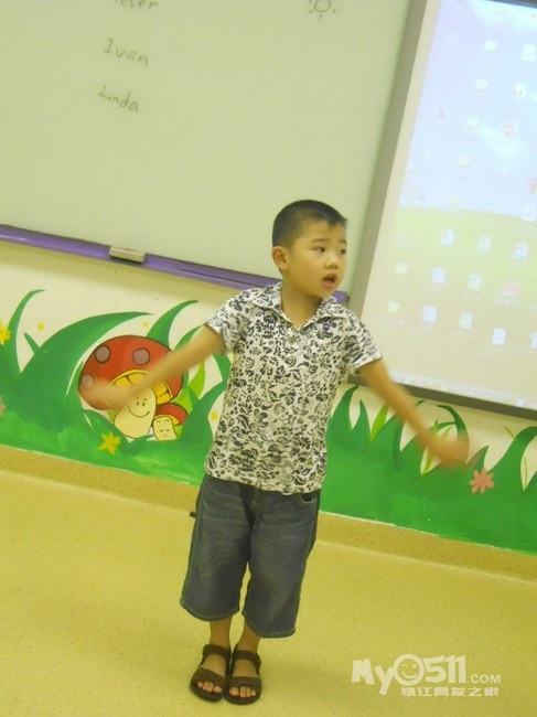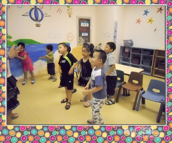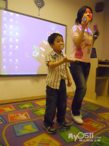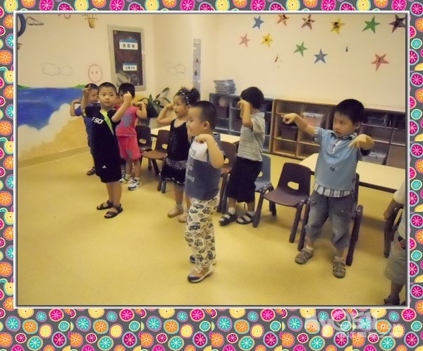 孩子们在唱歌跳舞中复习英文字母
