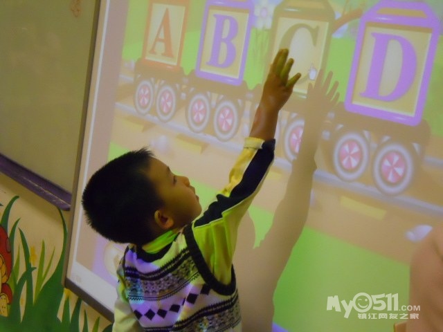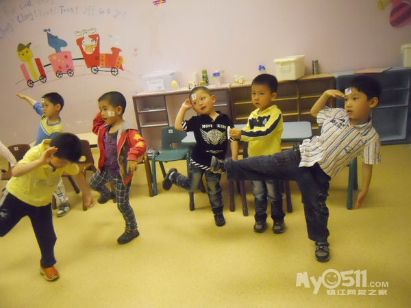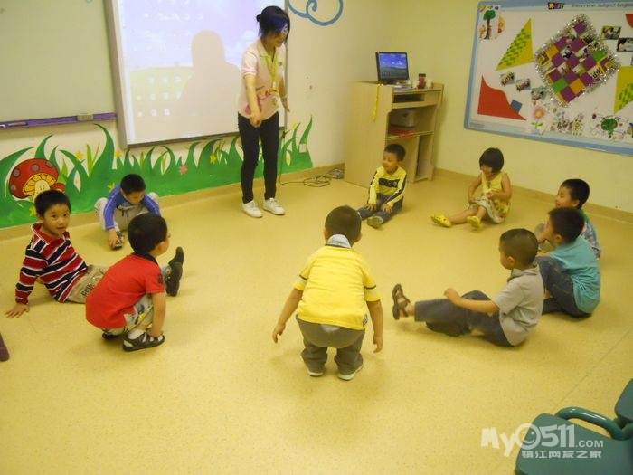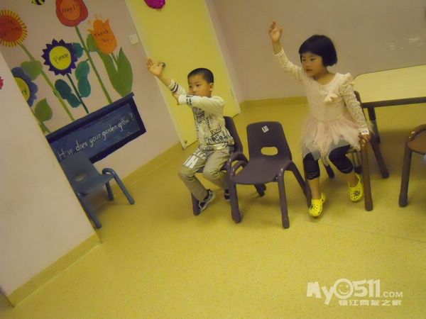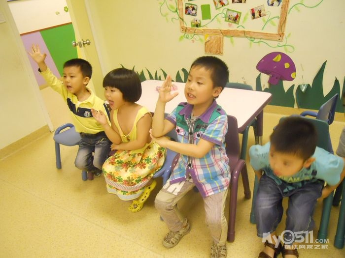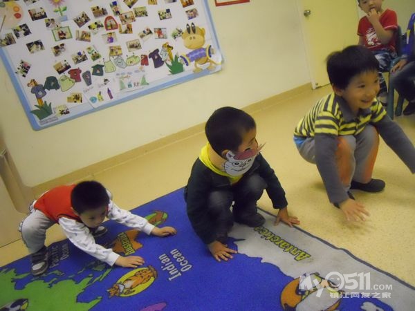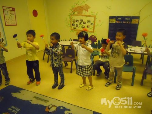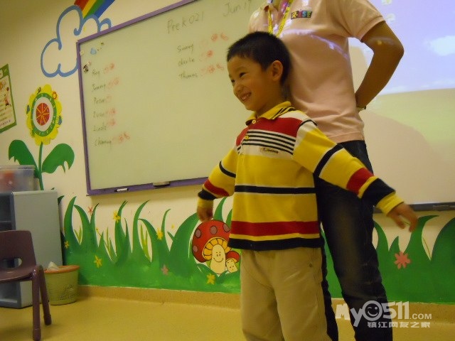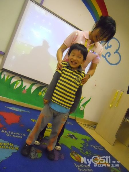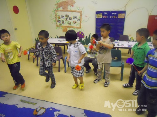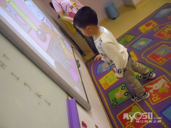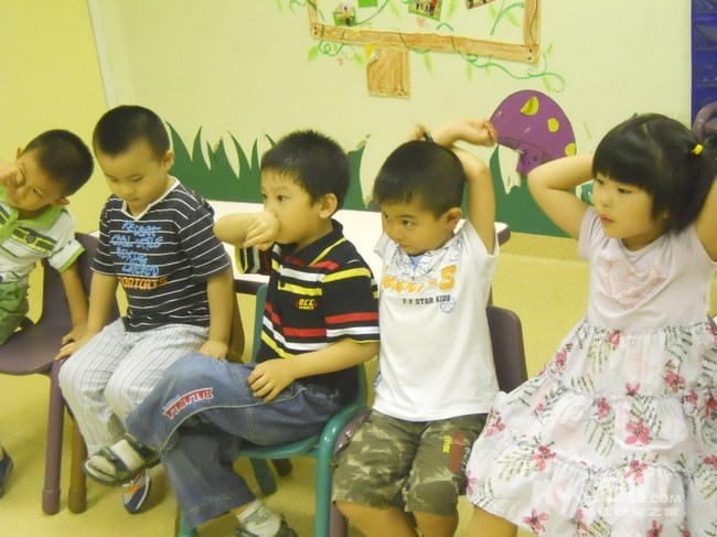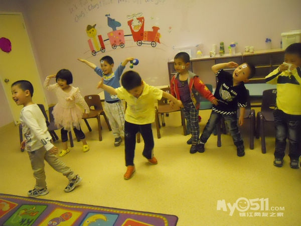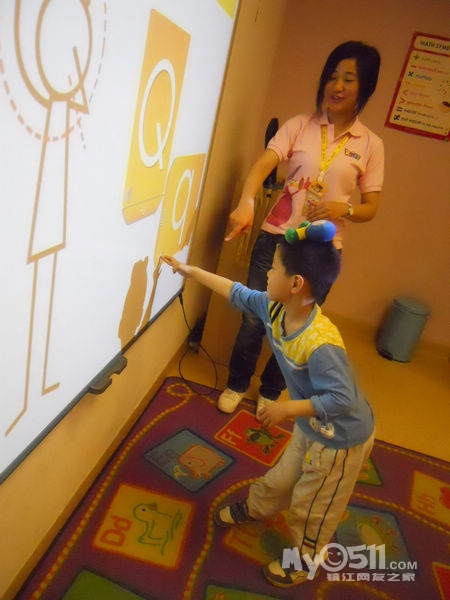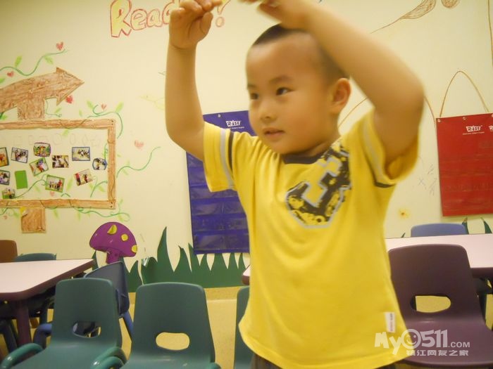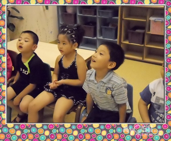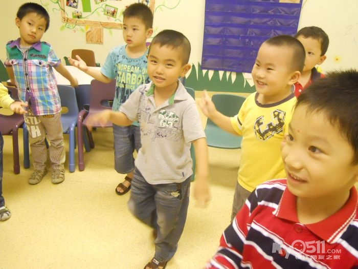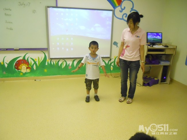 孩子们在唱歌跳舞中复习英文字母