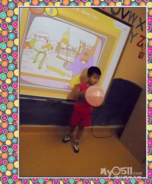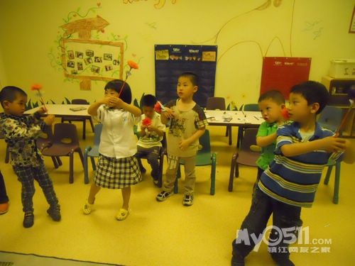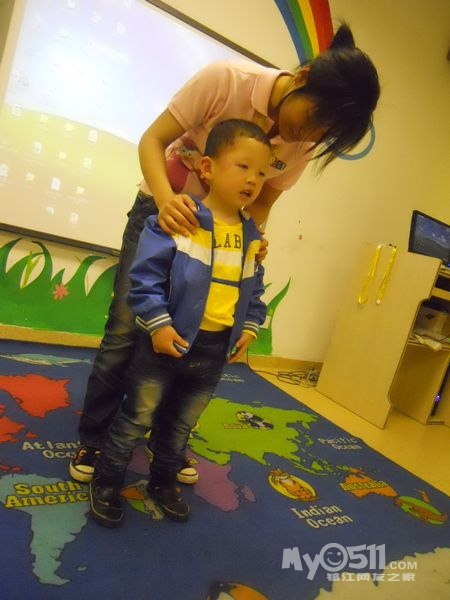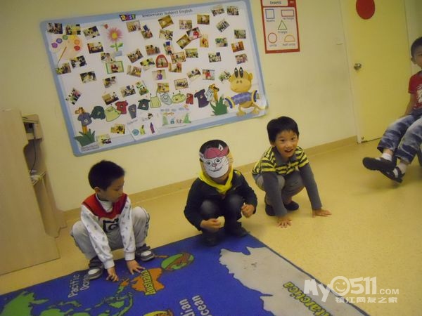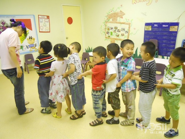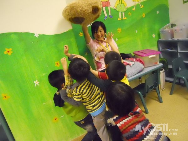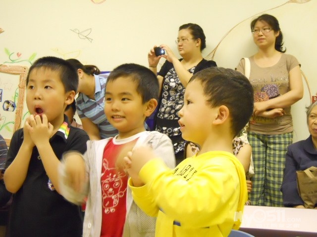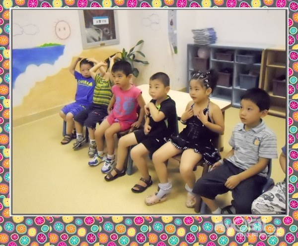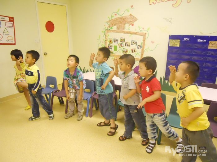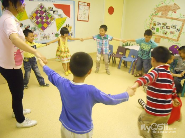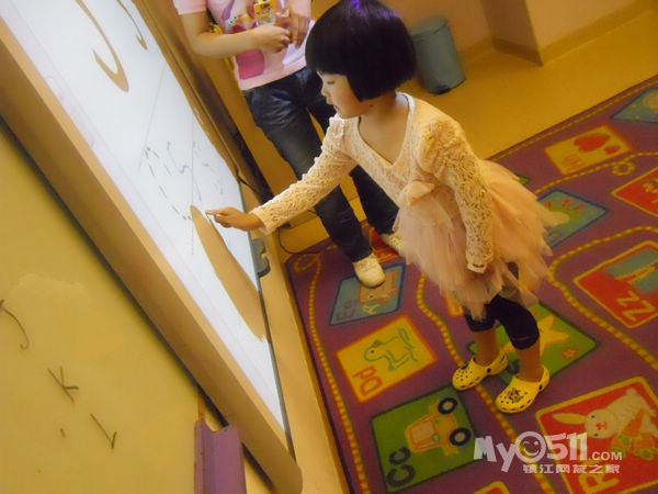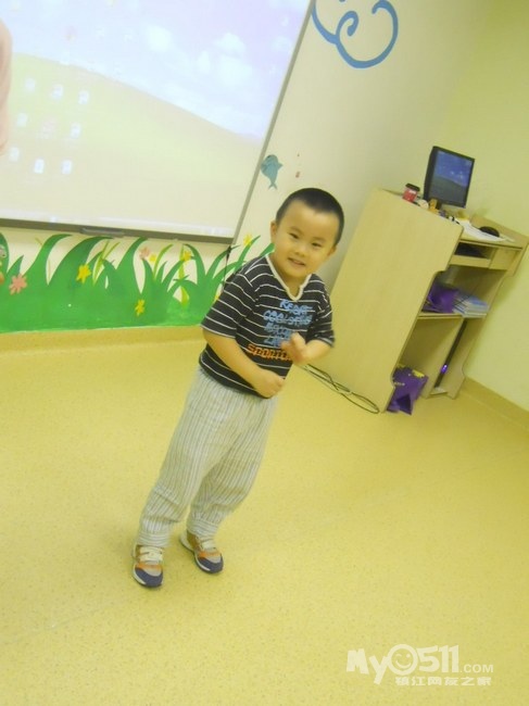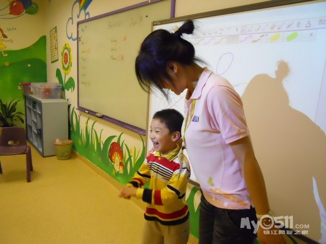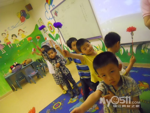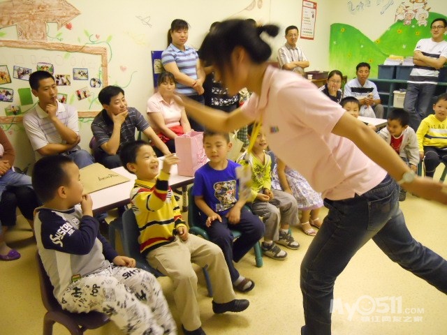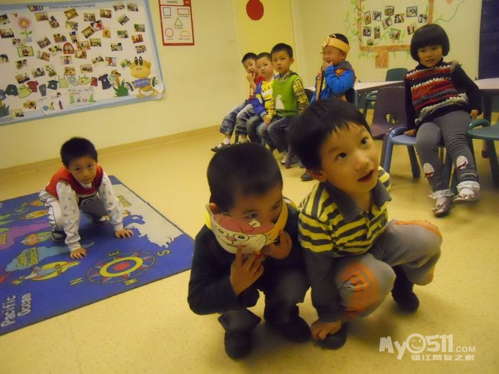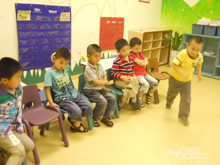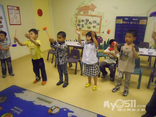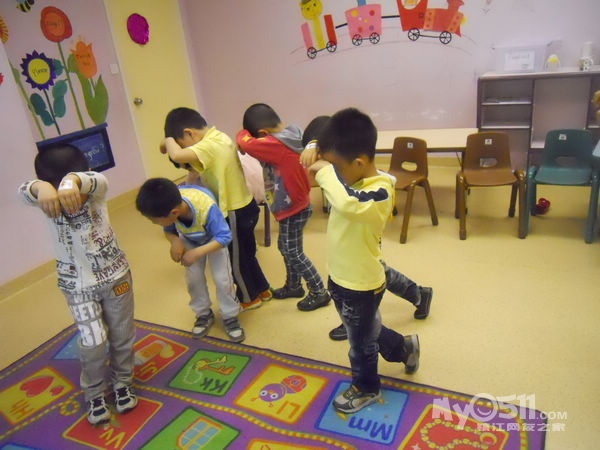 孩子们在唱歌跳舞中复习英文字母