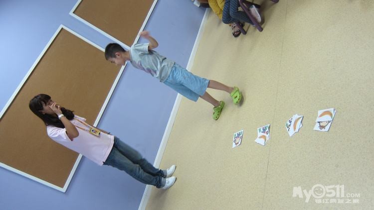 4 玩跳房子游戏,过程中要求孩子快速读出三个相似的单词。