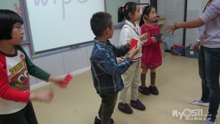 让孩子根据老师所说数字找出相应单词,并且按顺序拍好造句。