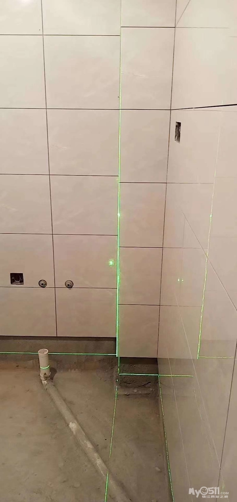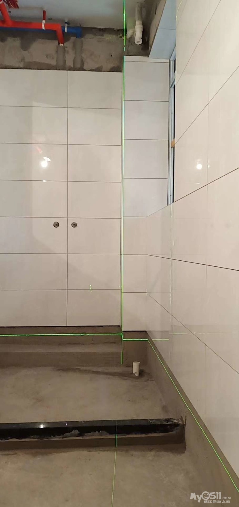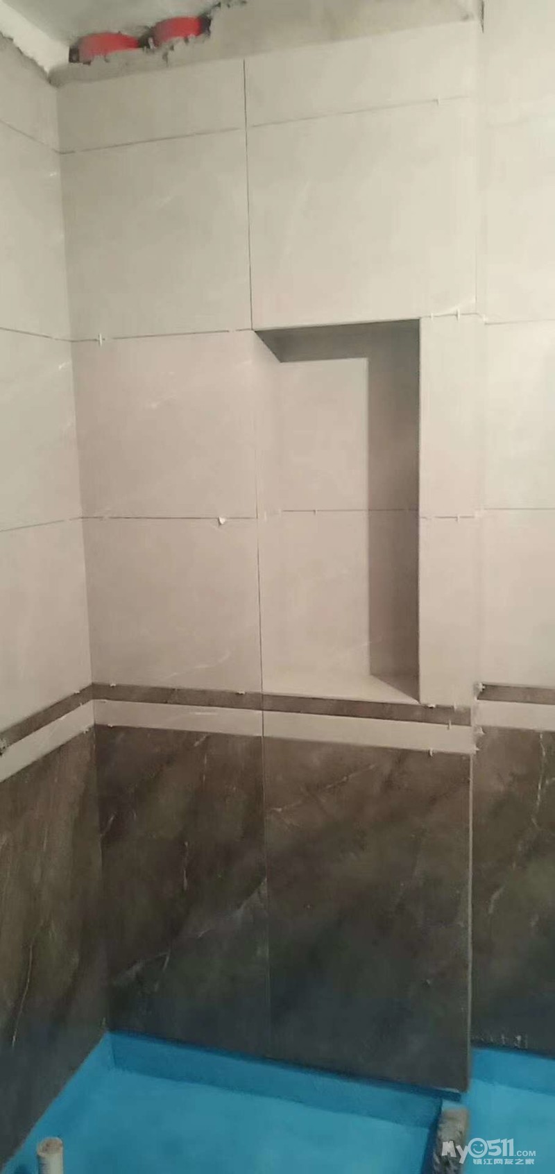 3.防水做好之后,进行24小时蓄水实验,确保无渗漏,再铺设地砖,最后补卫生间下口一路砖。