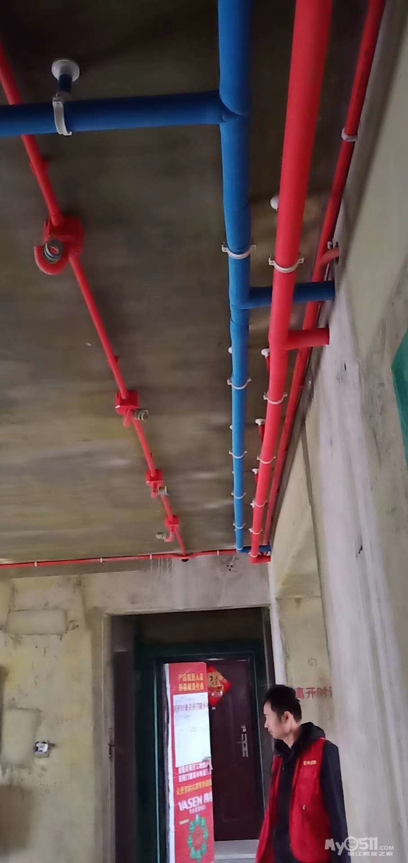 我们水电结束后由伟星管业作为第三方对水路进行验收,拍照并刻录光盘。我们工程部也会进行二次验收,也就是说使用伟星管业售后方面有双保险,一方面是我们公司保障,另一方面是伟星管业的保障。我们冷热水管要套保温层,水管正常从顶上走,这样能做到维修方便。