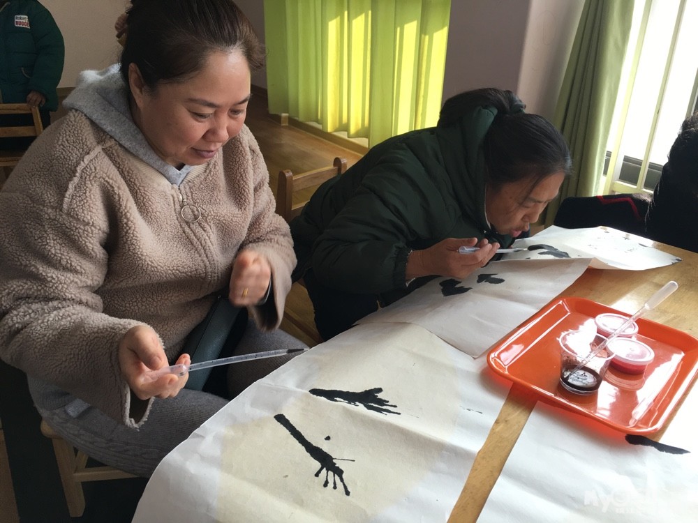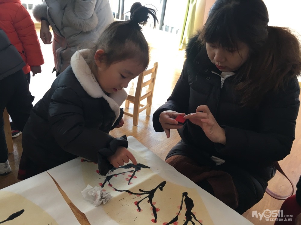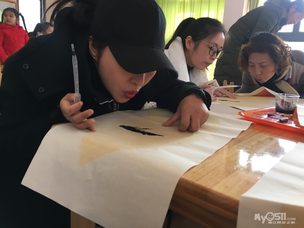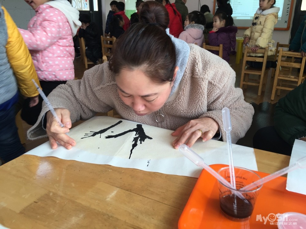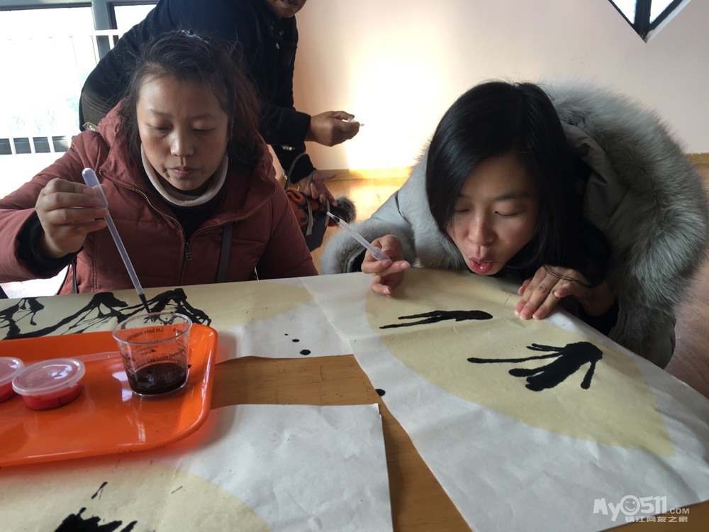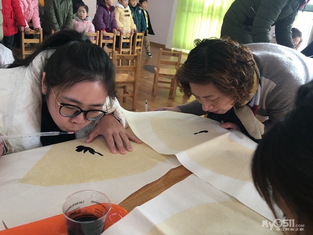 今天我们要和家长一起制作美丽的梅花,哈,老师给我们把材料都准备好了!用滴管吸足了墨,滴在纸上,用嘴吹开!粗粗的树干就出现啦!