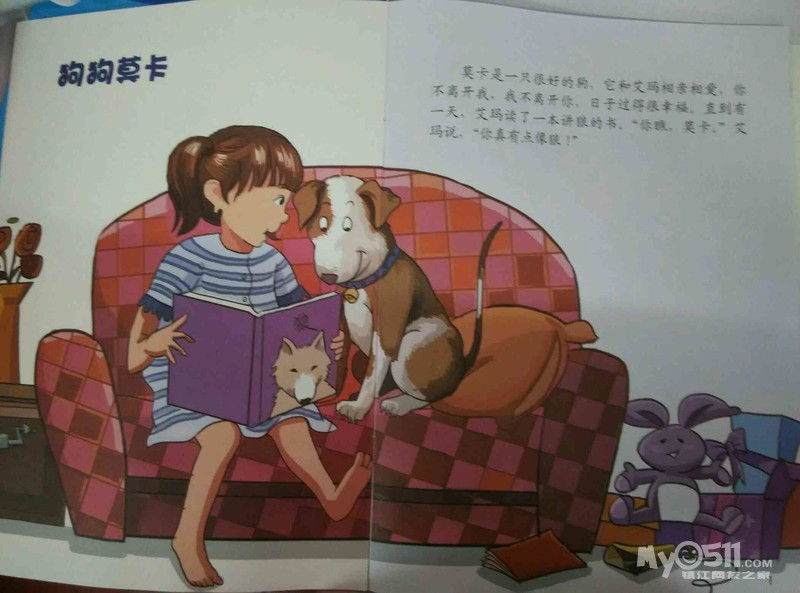 宝贝们在认真地看绘本书复习故事《狗狗莫卡》!