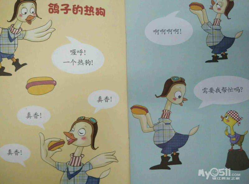 今天宝贝们学习了新的绘本故事《鸽子的热狗》,先来认识故事的封面告诉我们什么信息吧!
