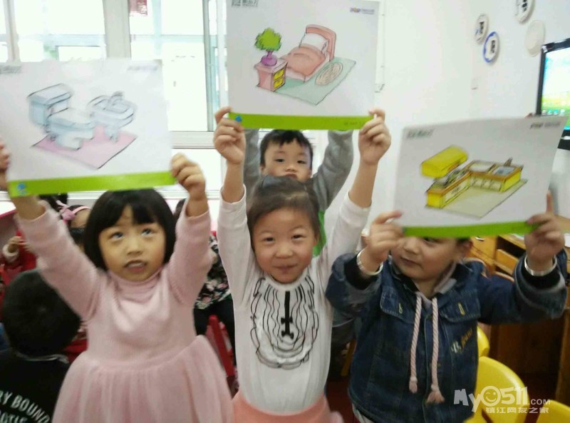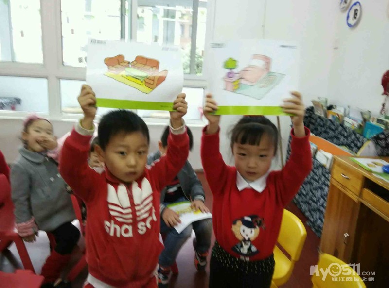 今天小朋友们学习了用新的英语短语来回答英语问题,Where is your Mom?  In the kitchen/bedroom/bathroom/living room.