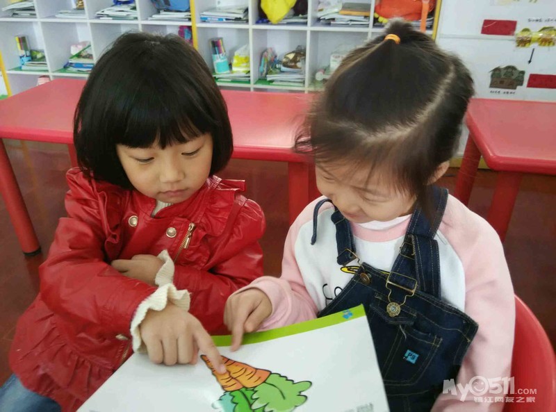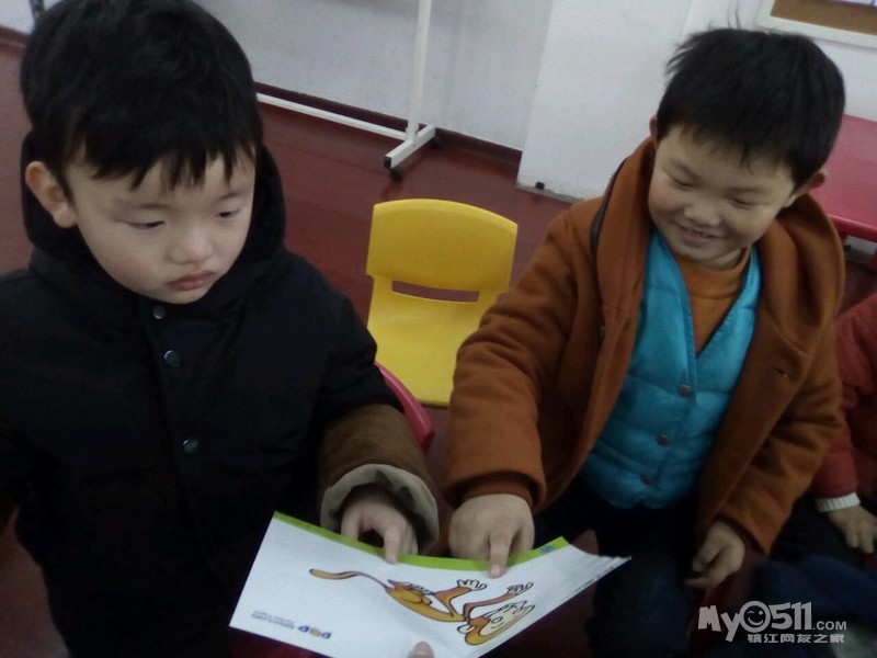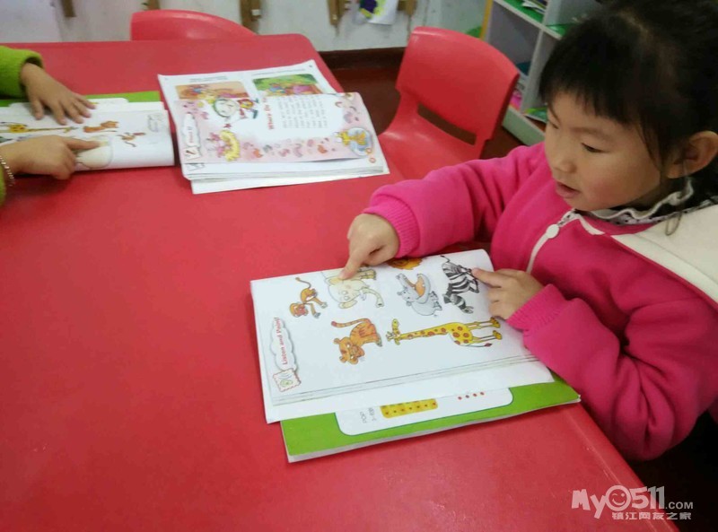 小朋友们复习完单词后就看泡泡英语书一边复习一边参与listening练习!