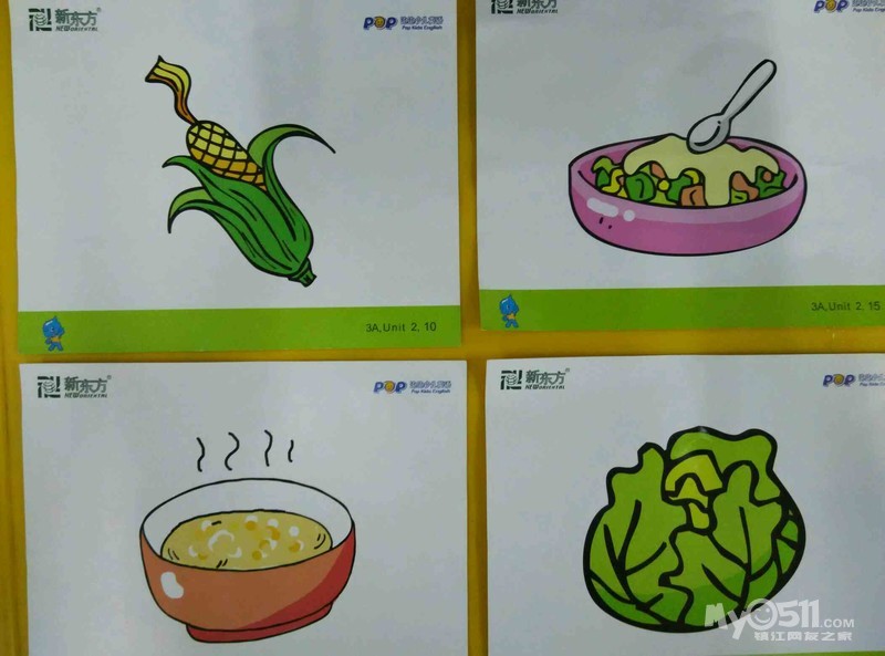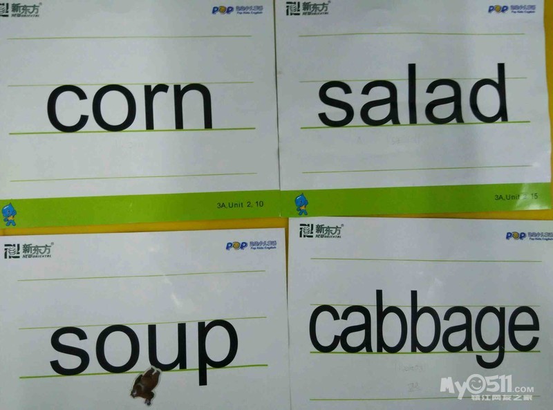 小朋友们继续学习unit2的新单词,今天认识的好吃的有cabbage(卷心菜), soup(汤)  salad(沙拉)  corn(玉米)