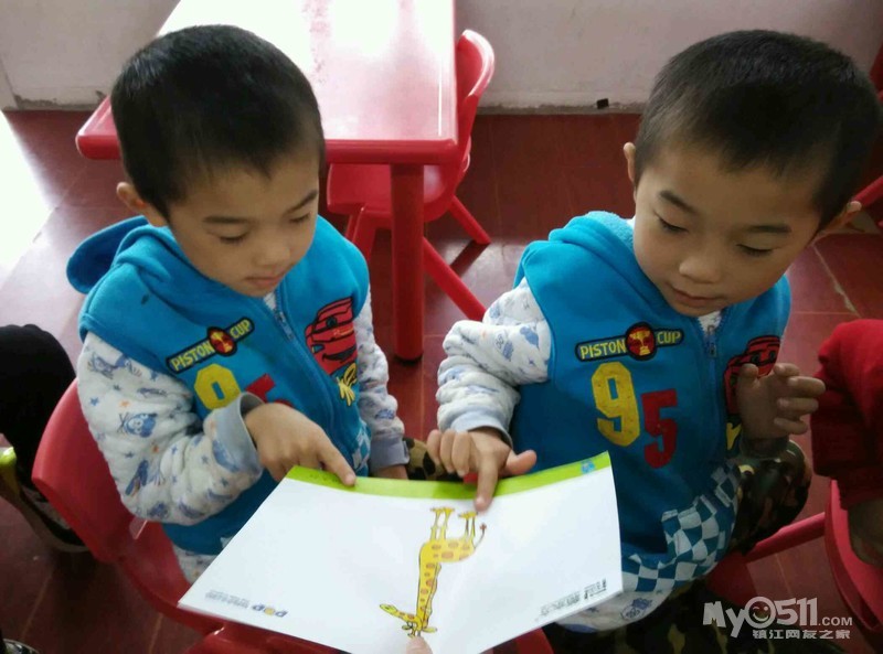 大一班的宝贝们在认真地看书指认图上学过的动物单词呢!