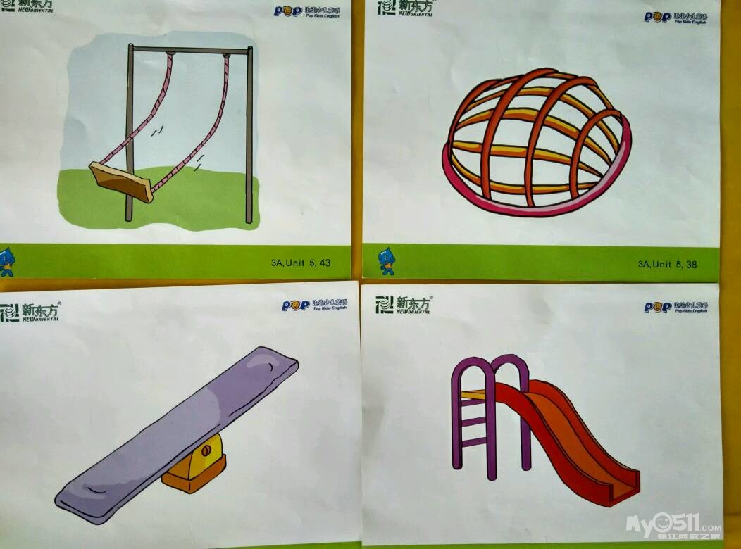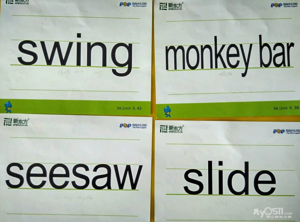 宝贝们一起学习了unit5的新单词,关于运动游戏的单词有slide(滑梯)swing(秋千)seesaw(跷跷板)monkey bar(猴架)