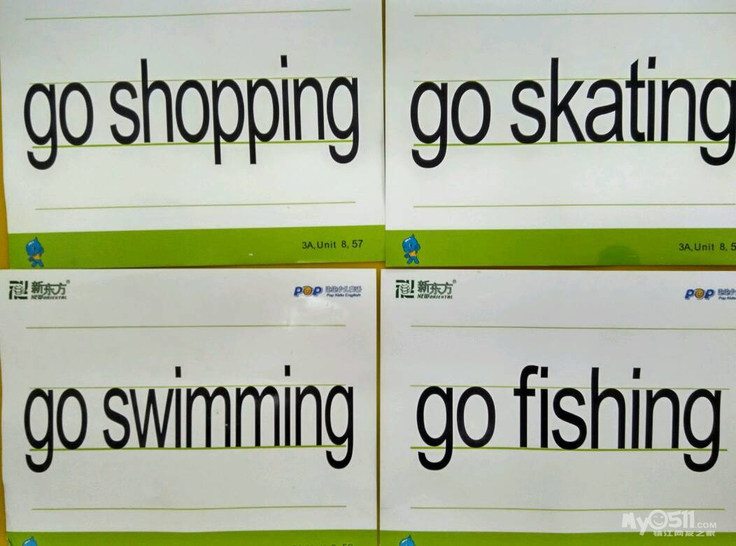 小朋友们一起进入新的单元主题认识了新的英语短语go shopping(去购物)go fishing(去钓鱼)go swimming去游泳go skating(去溜冰)