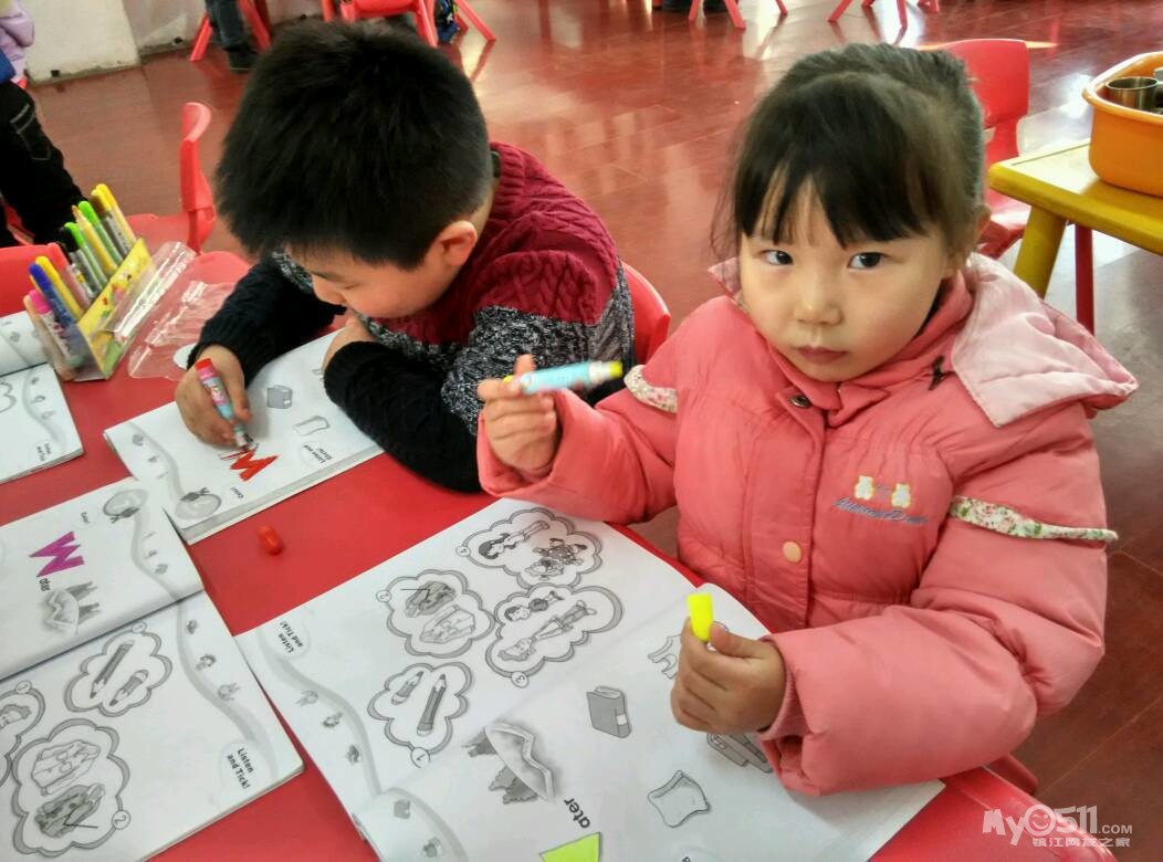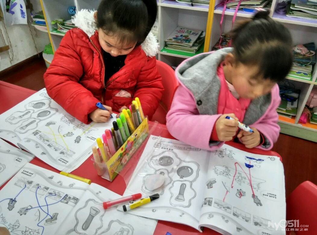 小朋友们一起完成英语活动手册的课堂作业啦,宝贝们的听力练习做得越来越棒了!