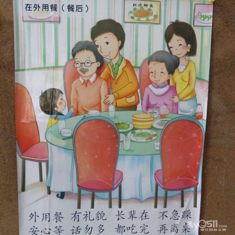 今天学习《餐后》外用餐,有礼貌。
