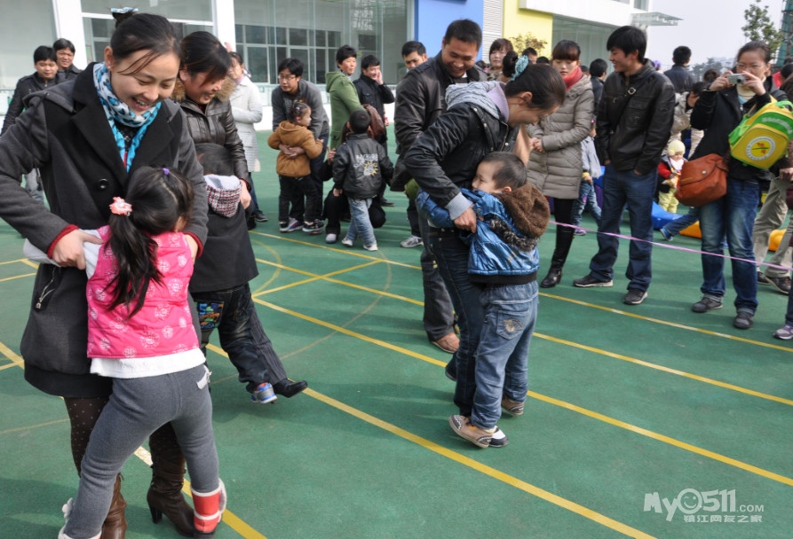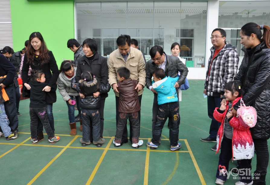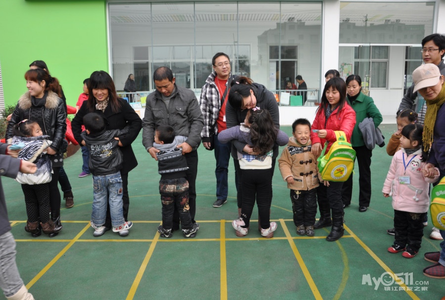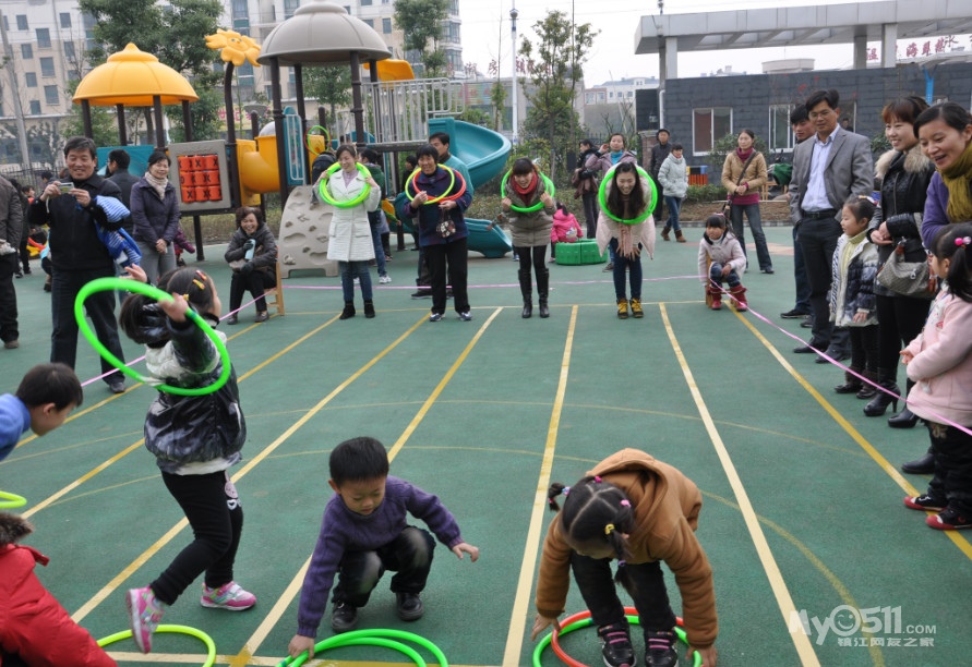 活动规则:爸爸的脚必须站在起点线之外;不能抢在哨声之前开始游戏;幼儿取圈必须是从下往上取出,家长不得帮忙;妈妈必须将呼啦圈套在身上。