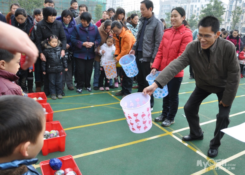 活动规则:幼儿和家长所站得位置必须在规定的范围内,不能踩线;不能抢在哨声之前开始游戏;超过规定时间所投进的球则不计数。
