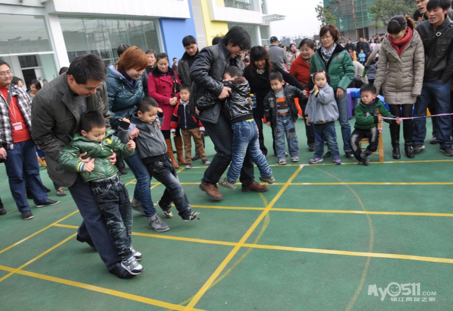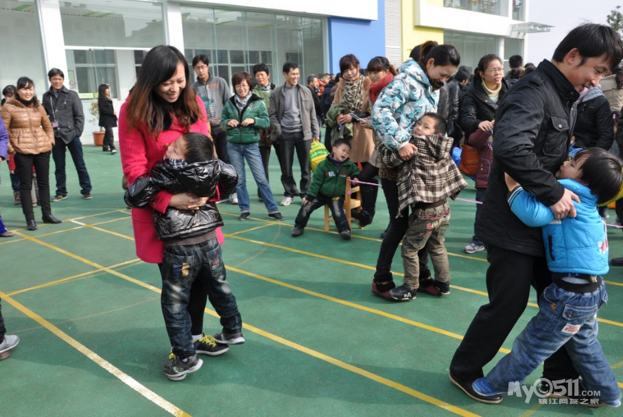 活动玩法:游戏开始,幼儿将自己的脚踩在家长脚面,并抱紧家长站在起点,教师一声哨响,家长带着幼儿向前行进,最快到达终点的游戏者胜利。