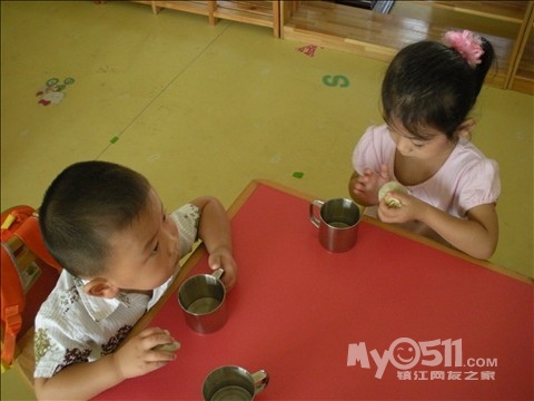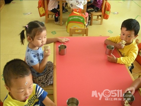 一直喜鹊飞过来,对熊妈妈说:“告诉你吧,幼儿园的小朋友,他们都是自己吃饭的,吃得快有干净。”