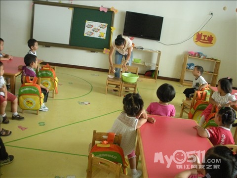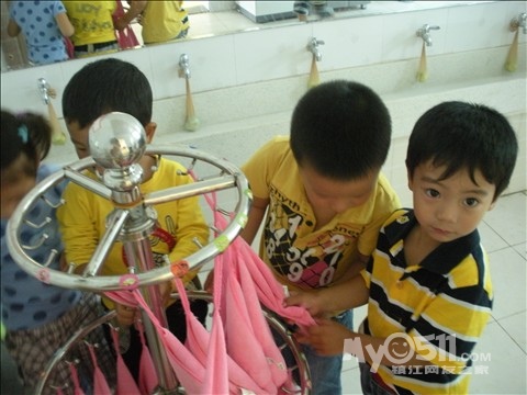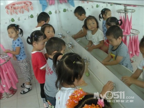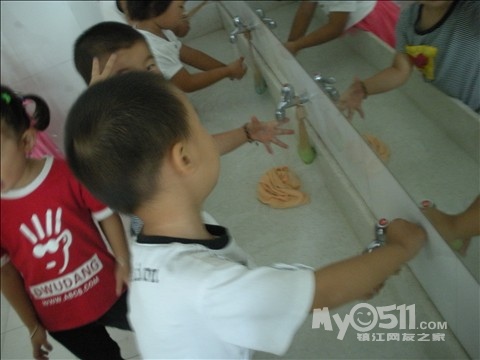 我先让幼儿洗手,然后我再示范如何正确洗手,以及练习正确洗手,最后分组到厕所洗手、擦手(顺便在认识一下标记)