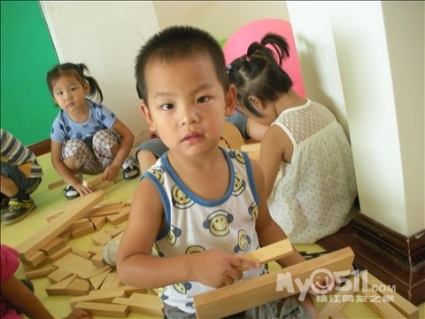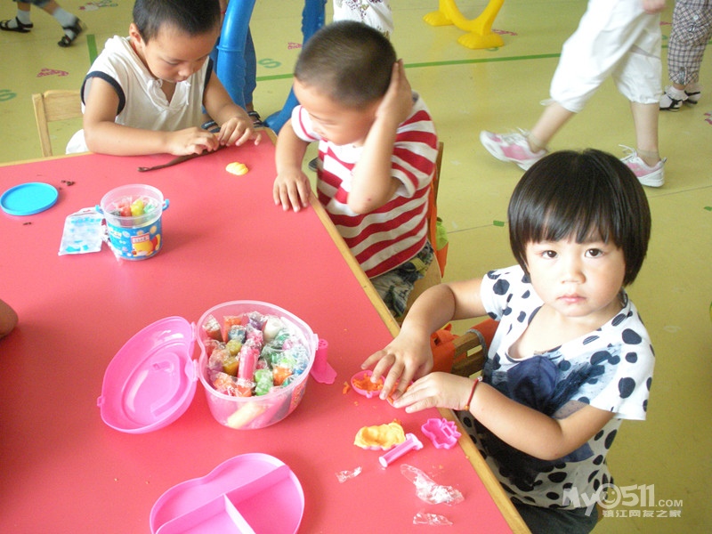 今天我们已经开始尝试开展区域游戏了,让小朋友玩自己带的橡皮泥,还有在建构区搭房子