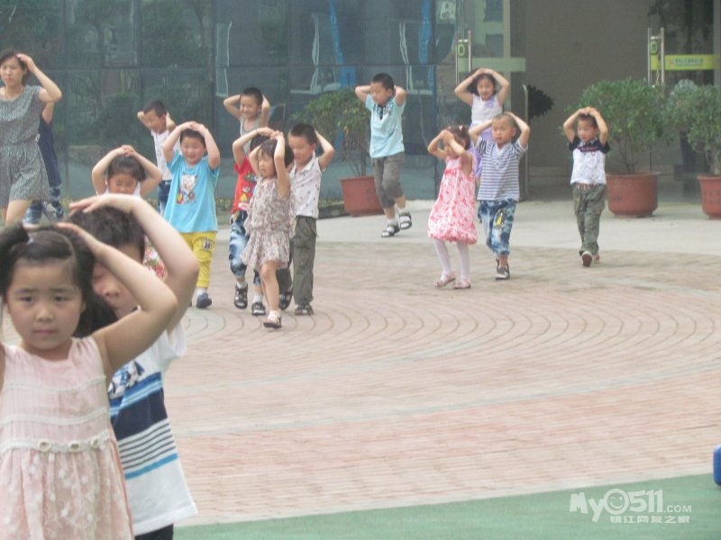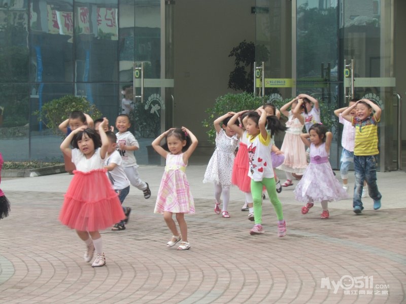 各班站立位置由东向西,依次从宝宝班、贝贝班、小1班、小2班……大1班、大2班。