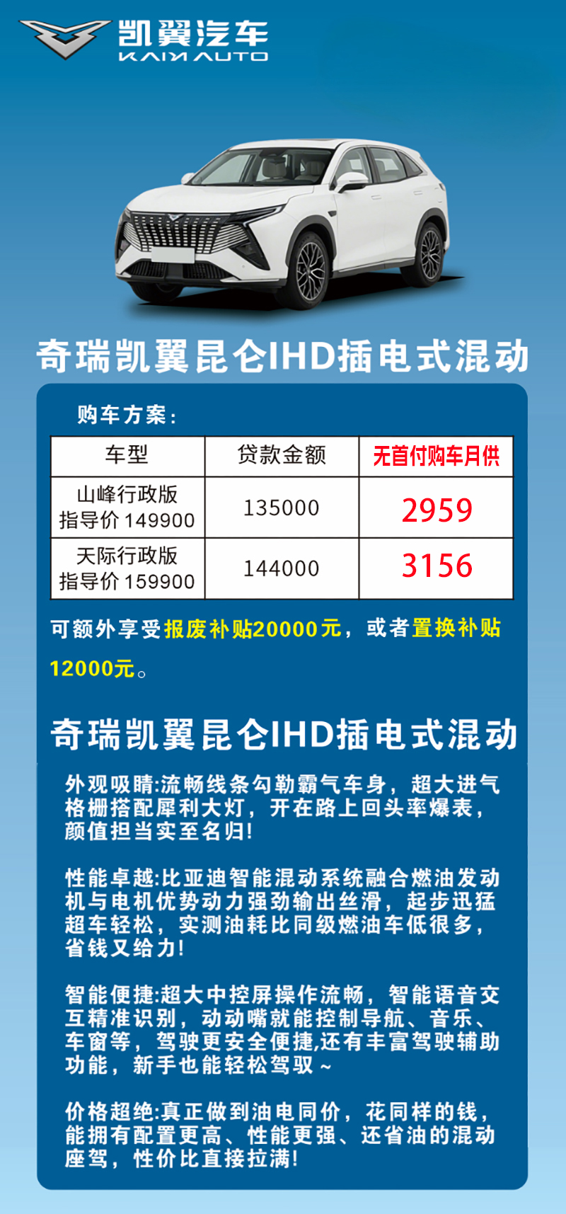 凯翼汽车特惠!享受无首付购车优惠政策,还可叠加置换/报废补贴!