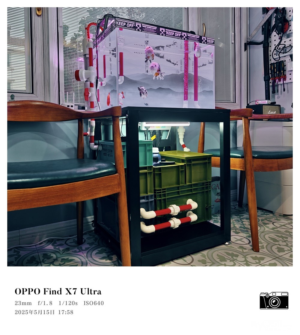 原来的上过滤滴流盒用于5条兰寿感到明显过滤能力不够。星期一启动了鱼马桶虹吸底滤,星期三5条兰寿入缸。至今天第5天了,从鱼马桶排放口就放出了这么多鱼便等排泄物。不过,干湿分离盒确实干净多了。