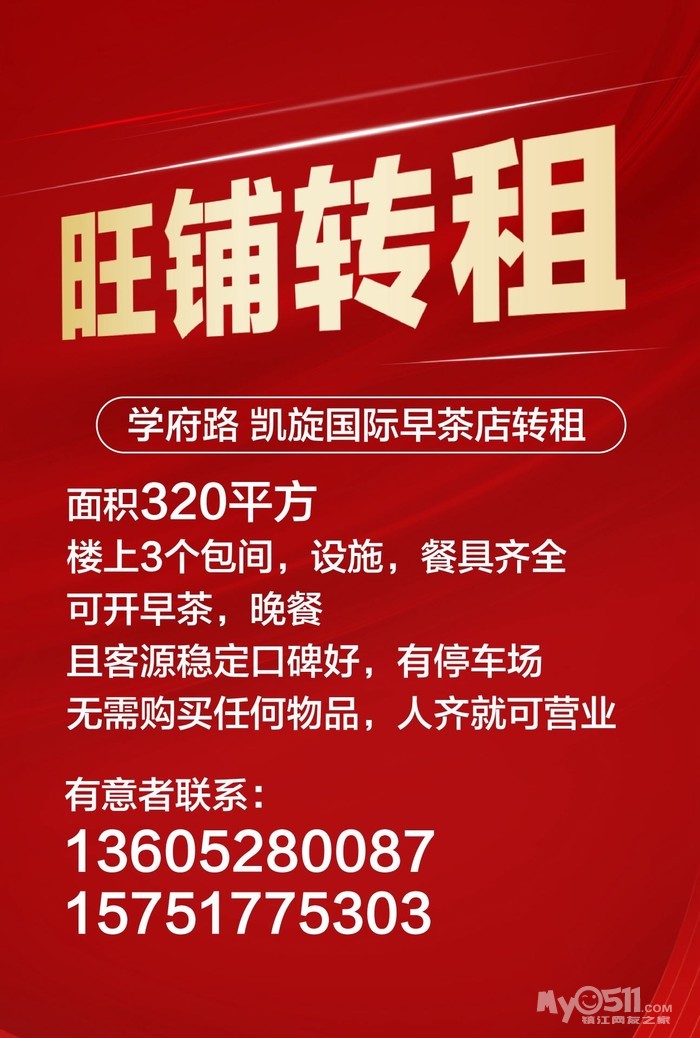 学府路,凯旋国际早茶店转租,面积320平方,楼上3个包间,设施,餐具齐全,可开早茶,晚餐,且客源稳定,口碑好,有停车场,无需购买任何物品,人齐就可营业,有意者联系:13605280087-15751775303