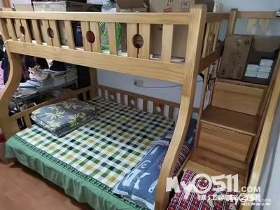 出售9成新楼梯上下铺床·纯进口新西兰松·纯 原木大料,尺寸内径150x200,上铺120x200cm: 外径258x168cm(边到边)因换大房子所以不忍 出售·原价6800,现一□价2500包送货安装’自 提2200地址:三茅宫一区,微信Withbeig