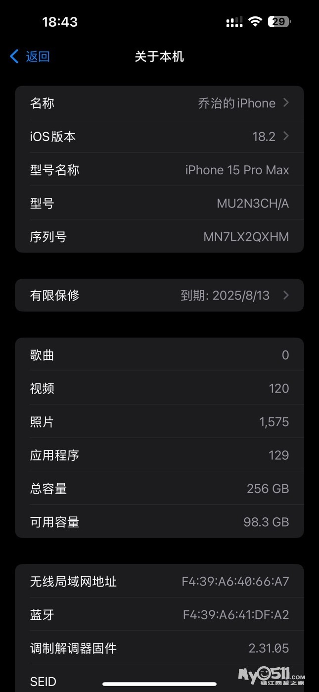 出售15promax256 黑色的电池100保修还有7个月,准新机,6800出