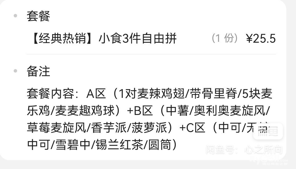 18.5出麦当劳小食3件自由拼