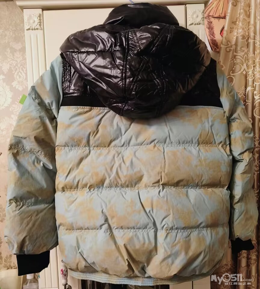 咖绿色 S码,肩宽45cm,胸围112cm,衣长68cm,迷彩,面料柔软透气,白鸭绒舒适保暖,宽松版,个性设计,连帽加厚,帽子不可拆。