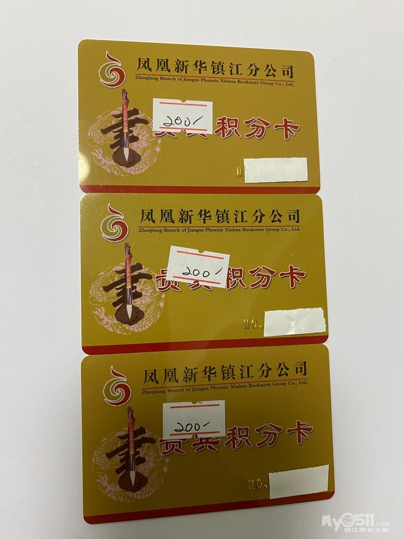 凤凰新华镇江分公司卡,可在市区各新华书店门店使用。面值200 /张,共计600元,现550元出售。可直接用卡扣款在新华书店买书,家中有孩子上学买书的十分划算!最好是在本地方便面交。需要请电话联系13805282873