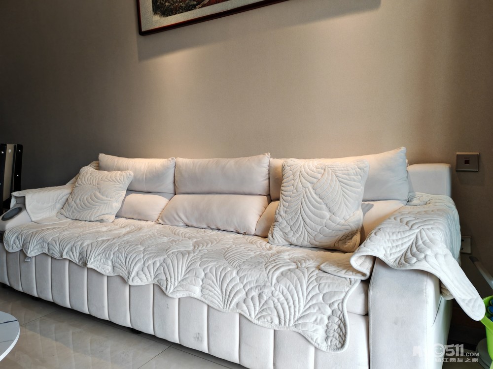 9层新三人坐沙发,奶白色,原价2000多买的,基本未使用,现1000元出,地址在中海润泽园三期自提。联系电话甘先生:18651280206
