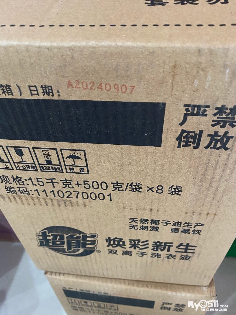 又到货、超能双离子洗衣液,一箱内含一个瓶装3斤,8个袋装的一斤,共11斤!38元一箱,38元一箱!生产日期2024年9月份!共20箱,一箱起售,仅限自提,不议价、地点在朱方路225号光华雅居门面房,全天有人!15951283205 微信同号