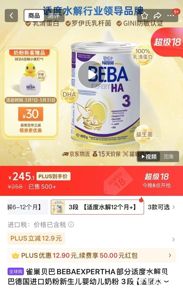 出雀巢适度水解奶粉3段
