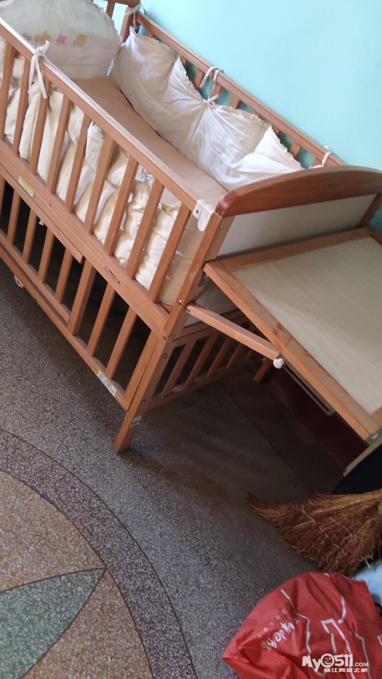 » 转让榉木婴儿床长1.18宽68高1.78有活动抬板可放婴儿尿布衣裤放便穿脱现转让