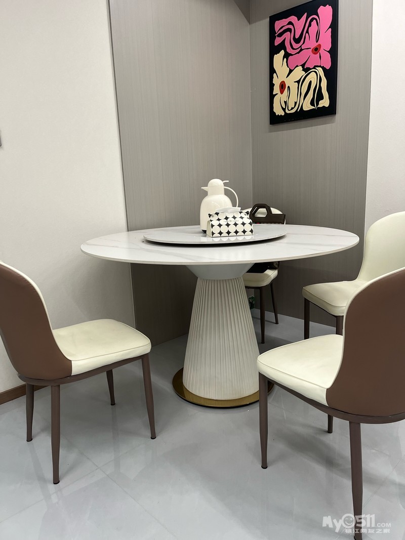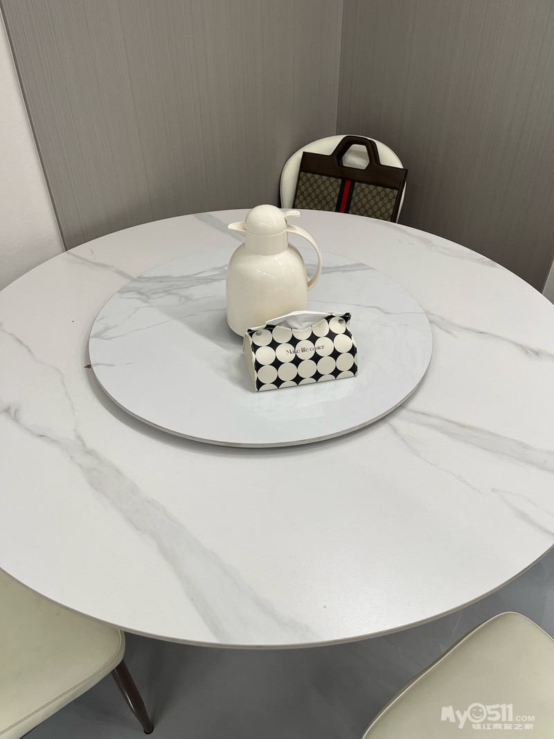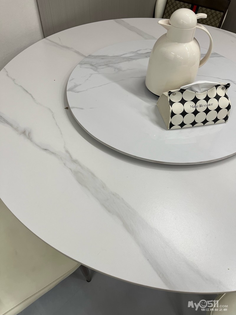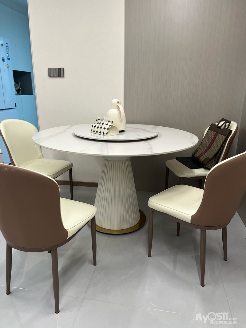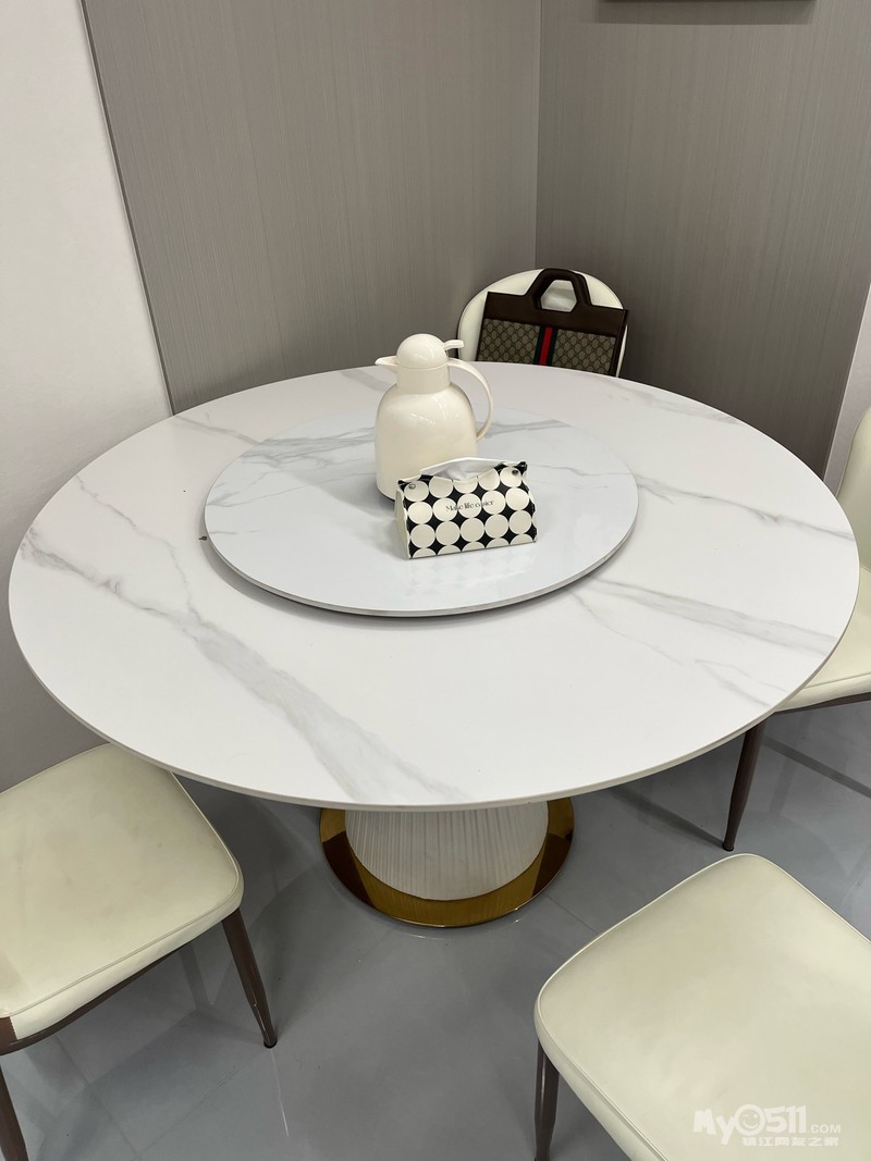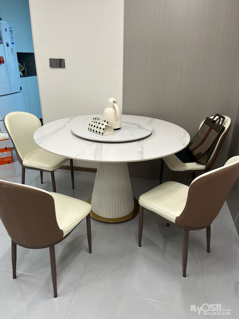 个人闲置转让一套餐桌椅!岩板材质!一桌直径一米三,小转盘70公分!自提!联系方式15150806114!微信同号