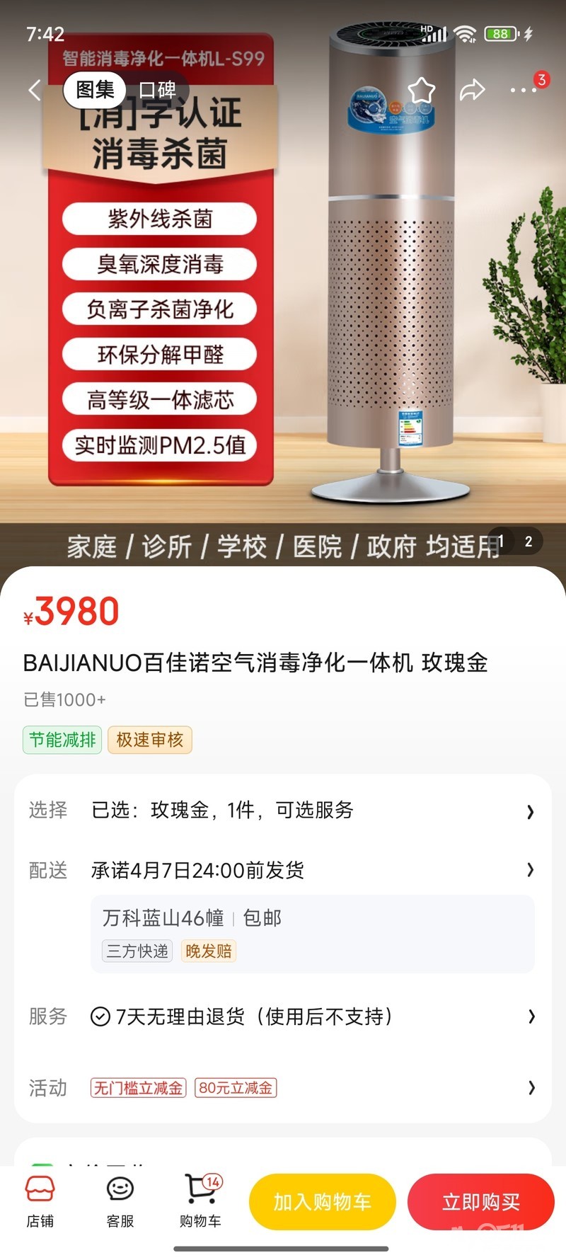 的百佳诺医用级消毒剂,未拆封,转让价格1500元,有保修卡,一联系电话13705283852
