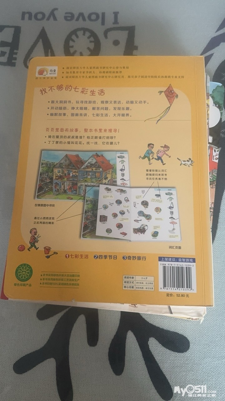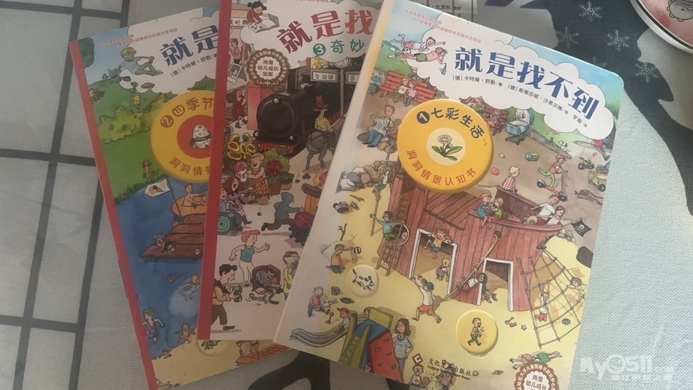 1.《就是找不到》是一套训练专注力的书,适合幼儿园前的孩子,没有文字,就是根据图片在书里找,我家娃很喜欢玩的一套书,质量也很好,厚厚的卡纸纸张,很耐看,可以给孩子讲不同的场景里面有什么物品,会发生什么故事。10元/本